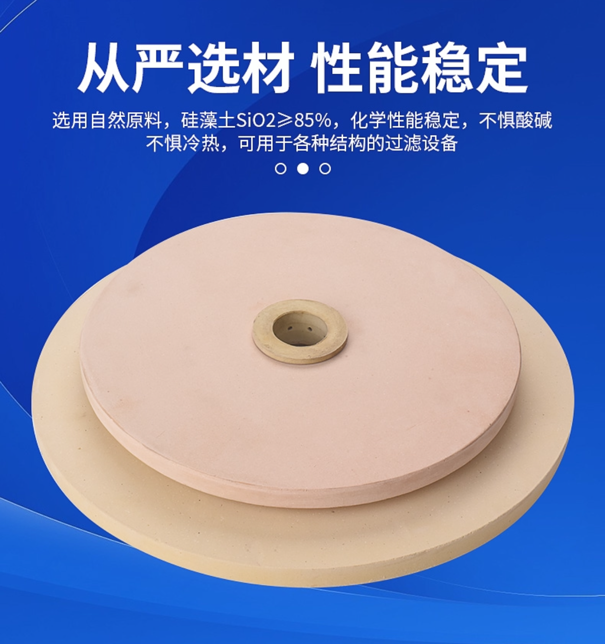 ? ? ??經過三年技術攻堅,硅寶科技自主研發的新一代超薄硅藻土過濾盤,經過無數次試驗檢測,解決了過濾盤高通量與高硬度同時兼顧等技術難題,于2022年8月成功推向市場,經過用戶實際應用檢驗,新一代超薄過濾盤盤體更輕薄、抗壓強度更大、過濾效率更高。過濾盤厚度由原來的20mm,降低為現在的10mm,超薄的可達到4mm。